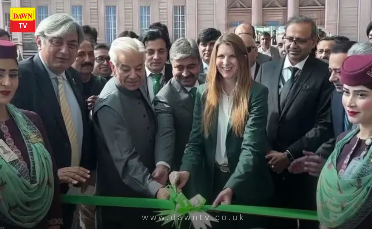 بیان کے مطابق ’پی آئی اے کی پرواز کو وزیر دفاع خواجہ محمد آصف اور برطانوی ہائی کمشنر جین میریٹ نے الوداع کیا ۔
